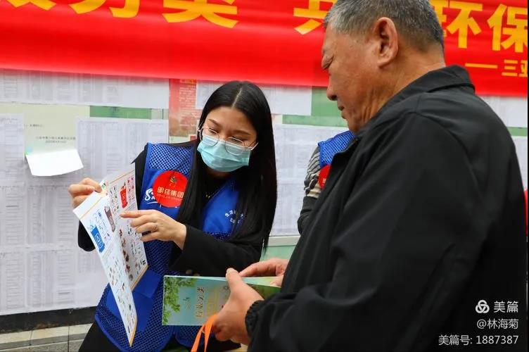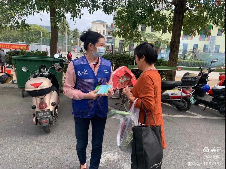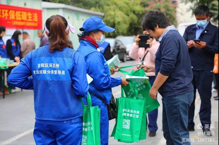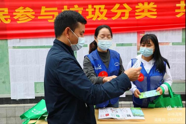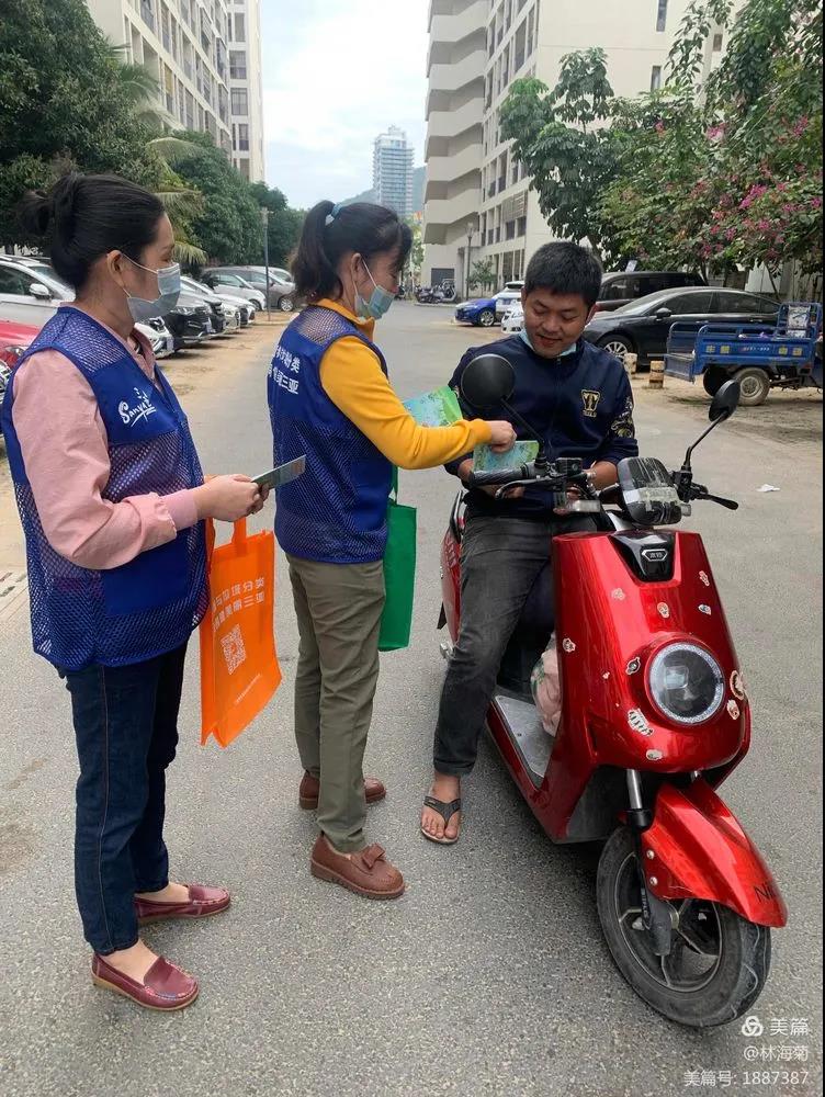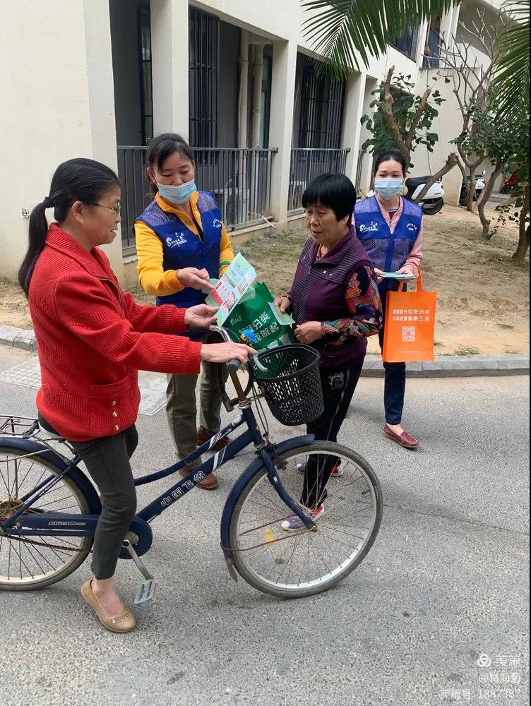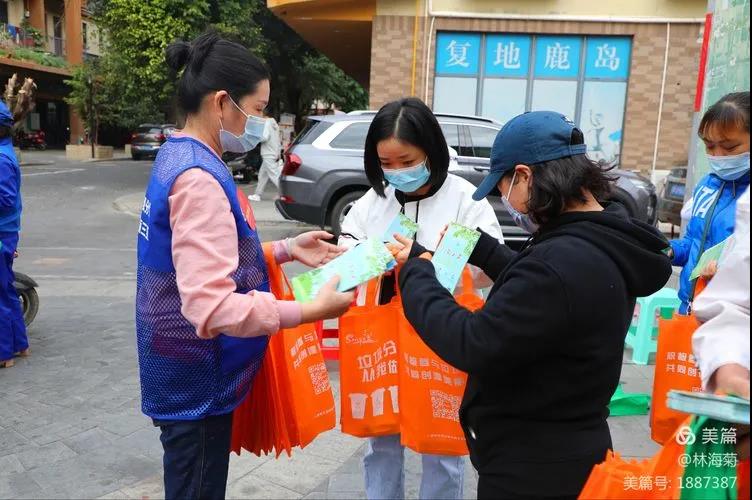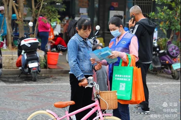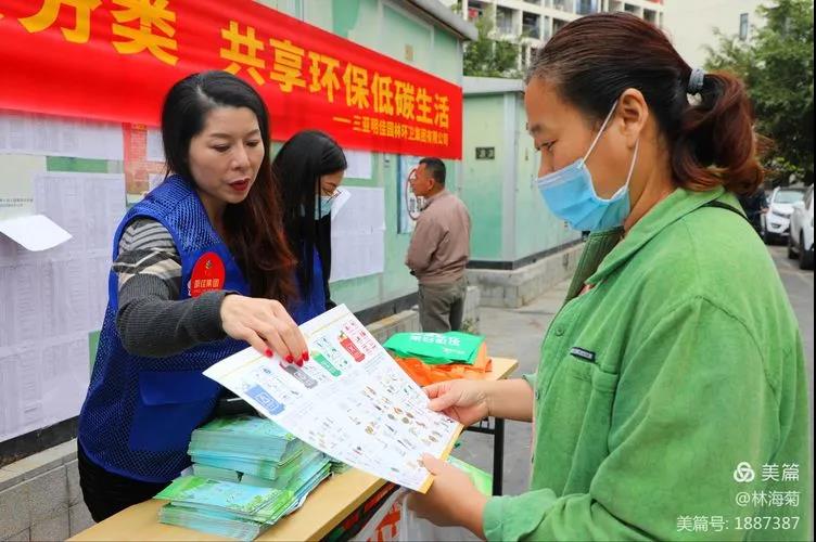 吉陽環(huán)衛(wèi)垃圾分類督導員與社區(qū)工作人員對居民分發(fā)垃圾分類手冊