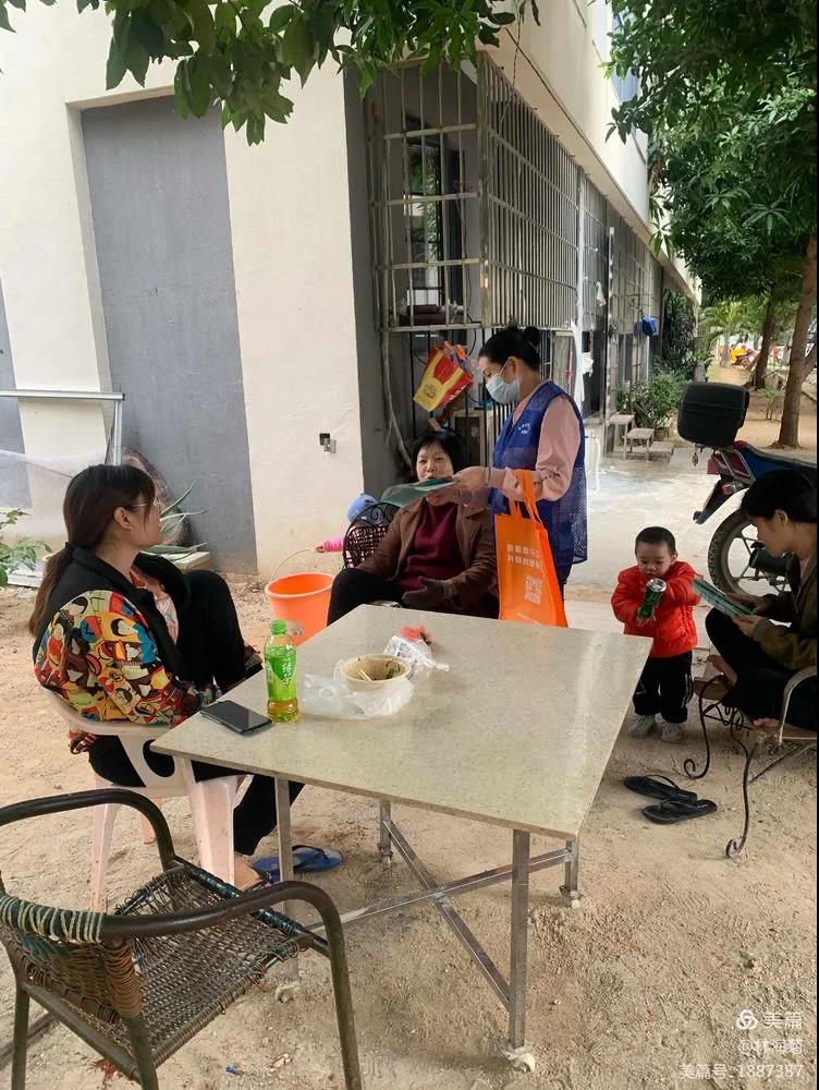 巾幗文明崗小分隊深入社區(qū)分發(fā)垃圾分類手冊并認真講解。