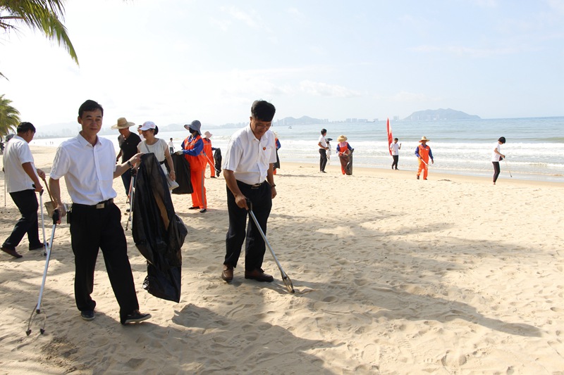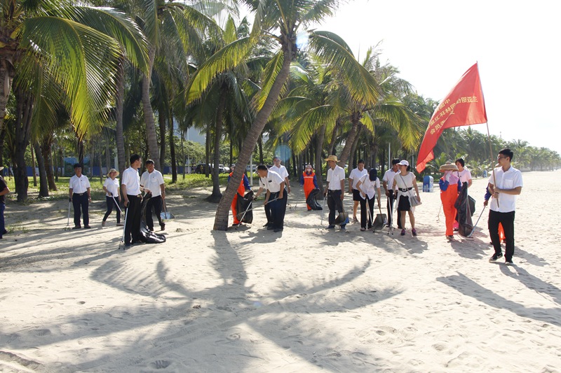 支部宣傳委員陳冬梅在活動(dòng)開始前首先代表集團(tuán)公司黨支部對(duì)長(zhǎng)期堅(jiān)持在海灘清潔第一線的環(huán)衛(wèi)工們致以最高的敬意。她表示,公司黨員要發(fā)揮先鋒模范作用,主動(dòng)認(rèn)識(shí)海洋、保護(hù)海洋,樹立環(huán)保意識(shí),共同呵護(hù)三亞的碧海藍(lán)天、綠水青山。